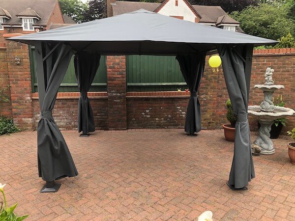 Finished in a hammered grey frame with complementing coloured curtains, makes this an elegant addition to any garden.